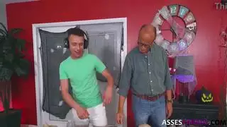 اثنين من المراهقين المشاغبين يركعون أمام جارهم المتزوج ، لإظهار حلماته